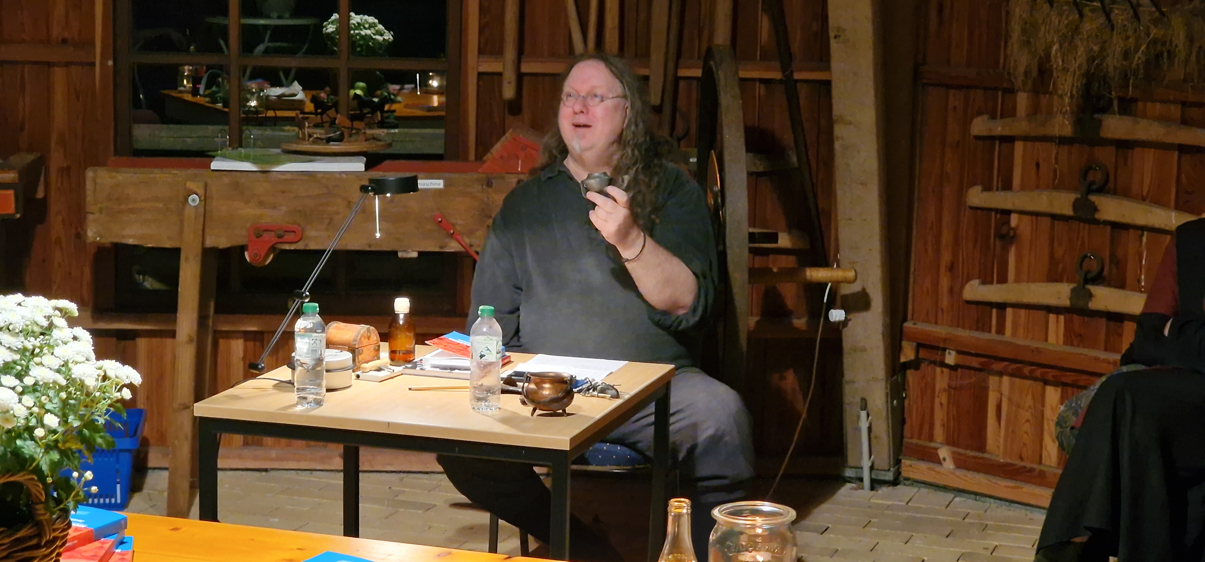 Nach einer etwas längeren Pause, in der Jens für Fragen zur Verfügung stand und die Besucher sich mit frischen Getränken versorgen konnten, ging es in die zweite Runde. Erneut wurden kleinere Gegenstände durch die Reihen gereicht und die Zuhörer konnten sich ein eigenes Bild machen, welche Rollen diese Dinge damals spielten.